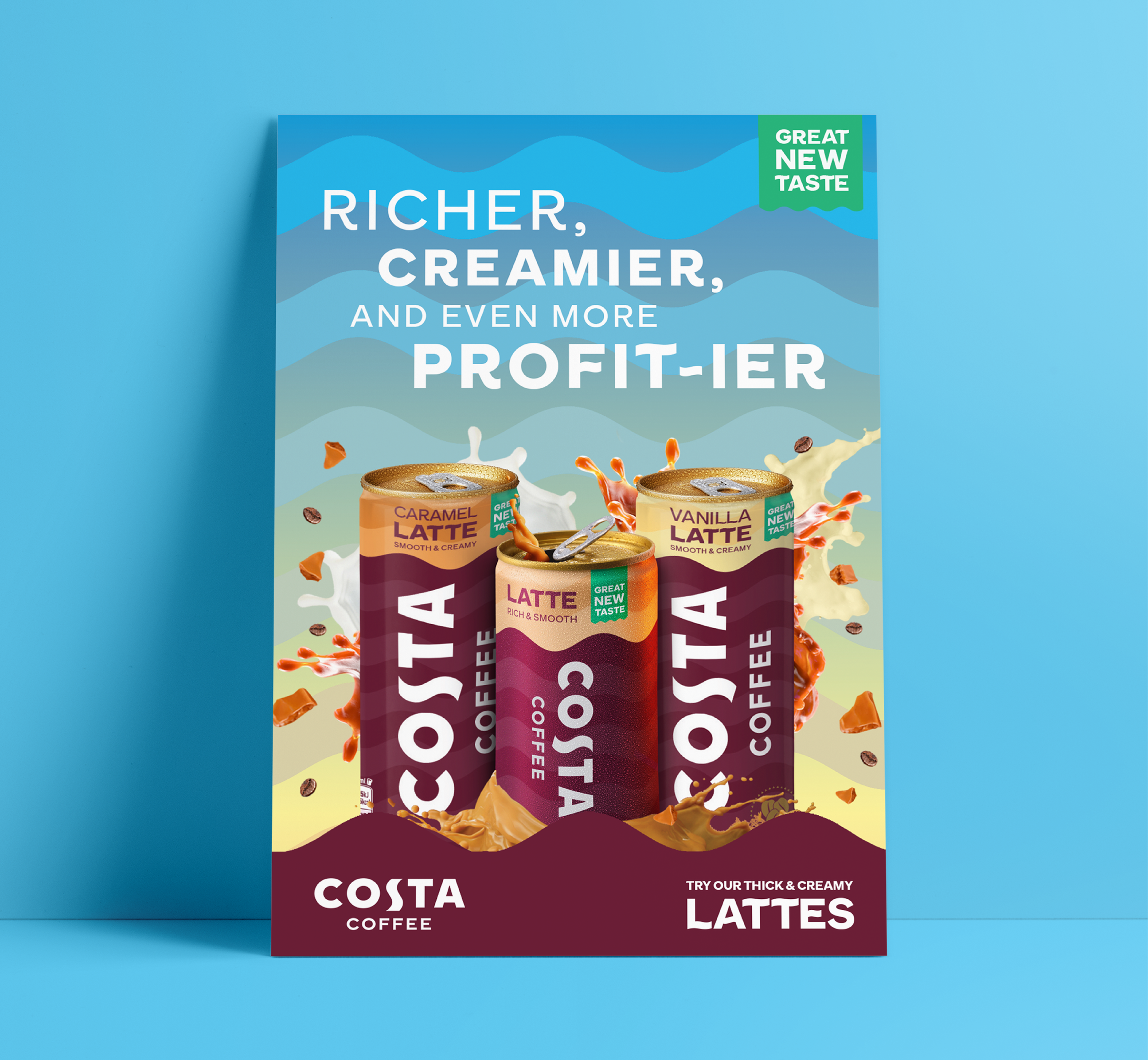 Coolest Line Up This Summer Campaign Costa Coffee (For Pilgrim Marketing)What i did> Template creation. Advertisement designA multi channel template build and asset creation for Costa Coffee’s Ready to Drink summer campaign, promoting their Frappe and Reformulation range for retail and trade.