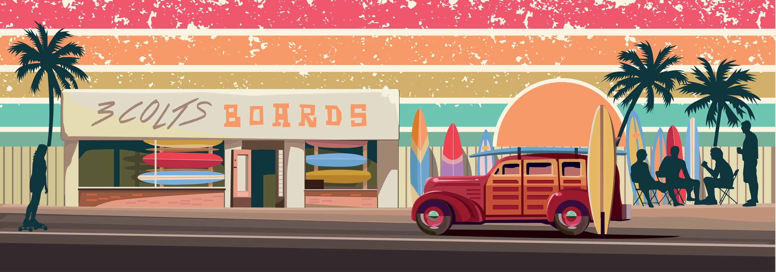 The designs influence was from West Coast American motels common place through the 50s - 60s with a gentle nod to surf themed colours of this time.