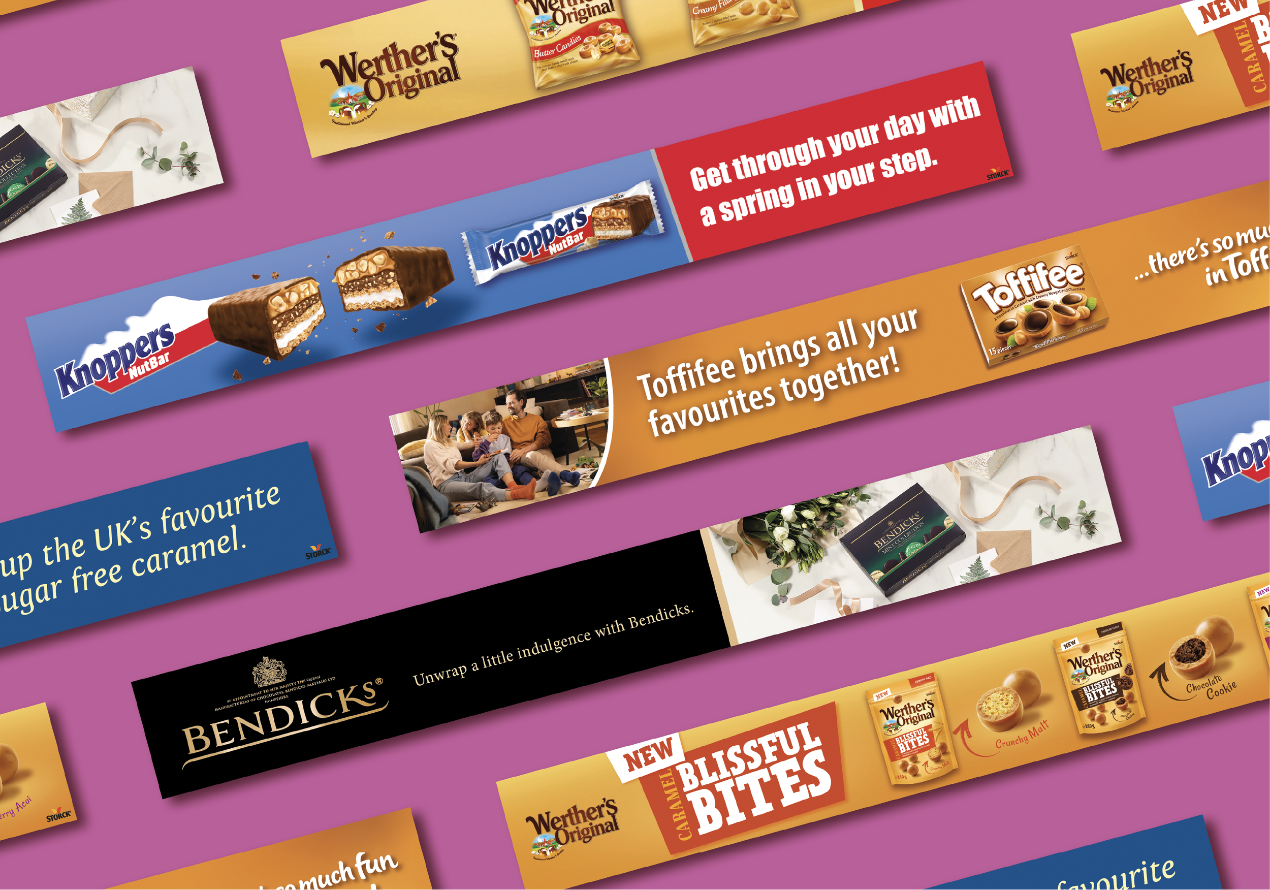 Artwork for the confectionary brand Storck U.K’s department that covers everything from publishing design, front of shop display artwork, shopper toolkit brand guidelines, flyer design, magazine and poster adverts, online promotions and others across supermarket retailers such as Sainsbury’s, Tesco’s, Morrisons and more.